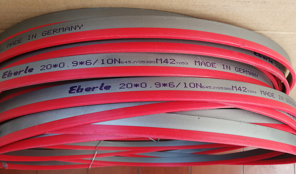 M42 引自德国全进口,采用德国埃贝尔原厂先进技术研制,从原料冶炼到加工成形均由德国原厂生产完成,是拥有当今世界先进水平的高性能带锯条。M42 一般情况下,几乎能够胜任所有材料的切削,通用性强,适合规模化生产。无论一次性作业还是连续性作业的锯切工作,都可获得更佳的成本效益。其基材为世界独有配方的复合工具钢,锯齿是用8%钴和10%钼的合金高速钢制成。适用于所有类型的金属连续锯切,目前已成为高速钢双金属带锯条中最为常用的双金属带锯条,也是Eberle品牌中综合性能的优秀代表。